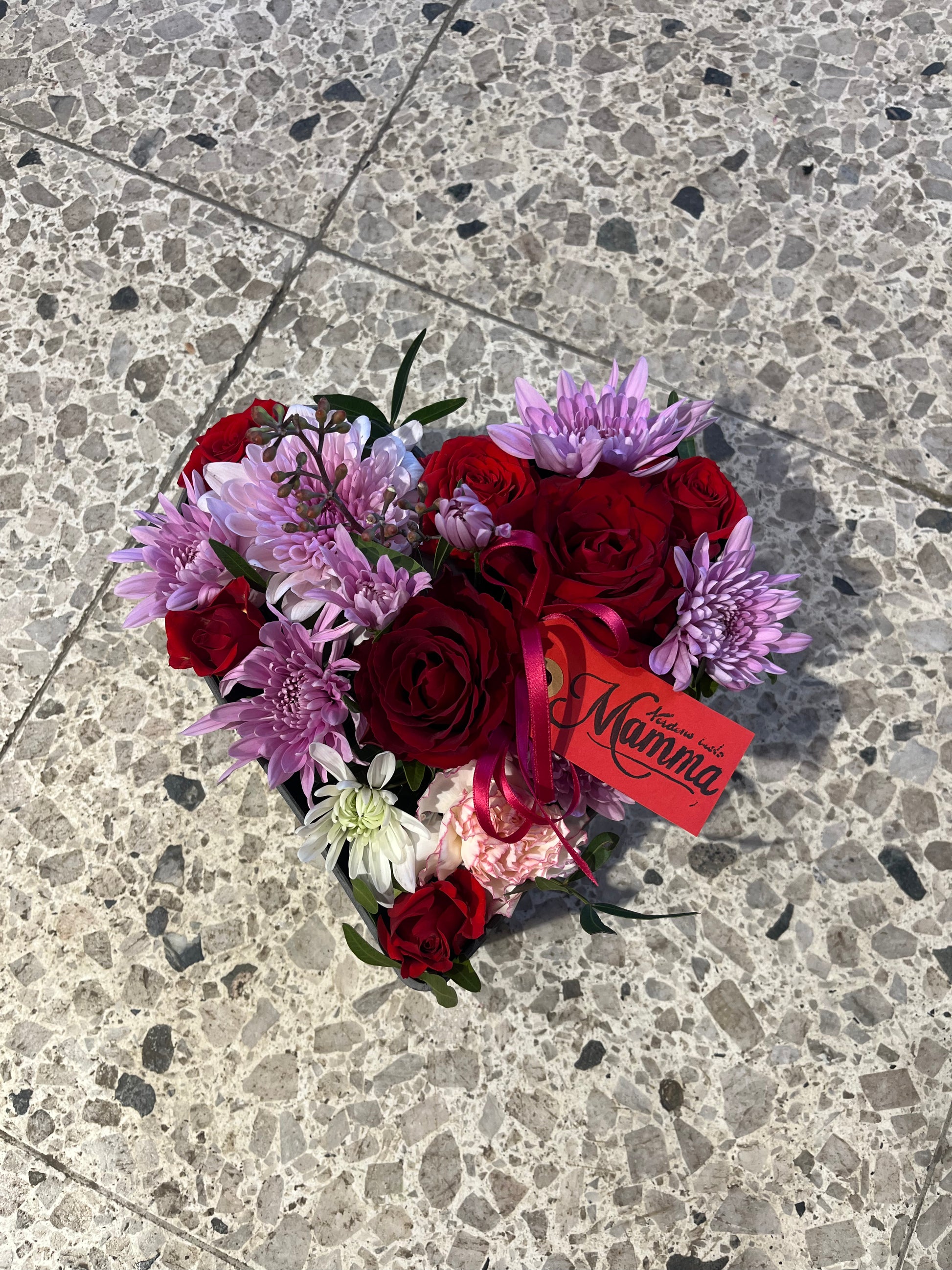 Hjerte dekorasjon med rosa og røde blomster💞