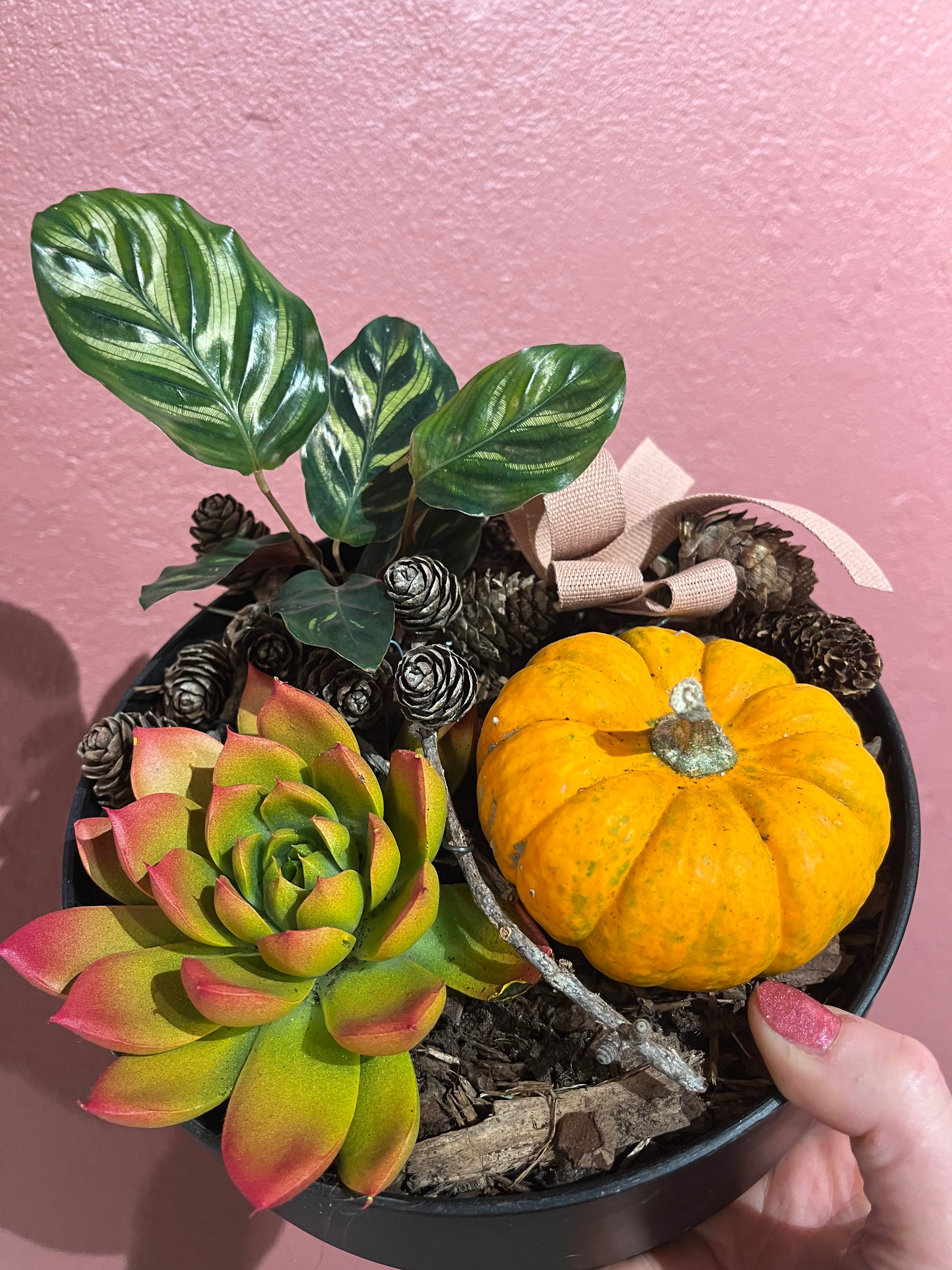 Høstlig liten sammenplanting med holdbare planter og gresskar 🍁